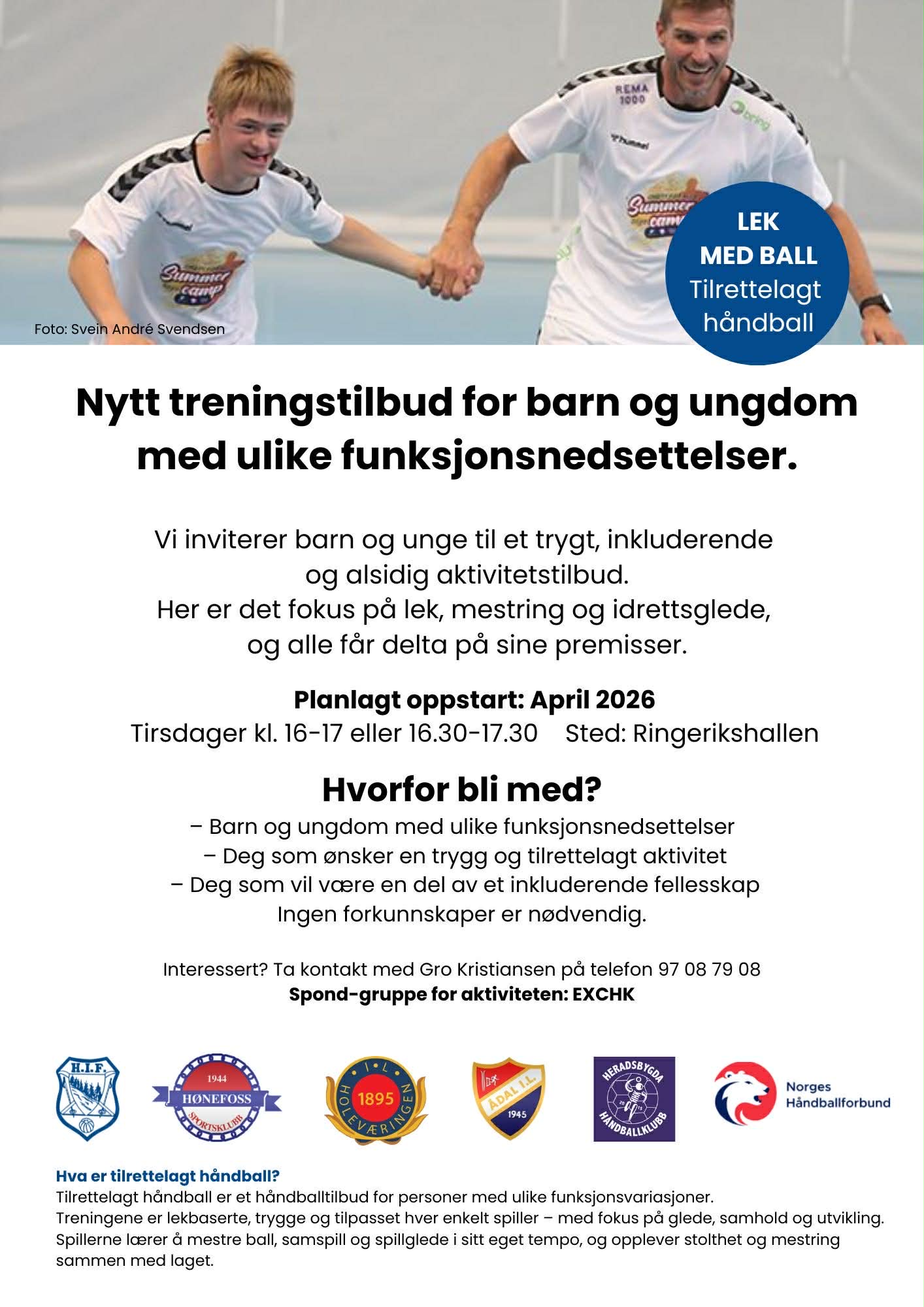 Håndballblubbene på Ringerike ønsker å starte opp treningstilbud i håndball for barn og ungdom med funksjonsvariasjoner. Ønsker du å delta?